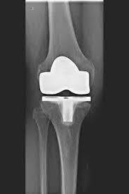La articulación de rodilla artificial reemplaza la superficie del cartílago destruida por la osteoartritis. El hueso subyacente del fémur y la cabeza tibial permanece intacto. Algunos comparan una articulación artificial moderna de rodilla con la coronación de un diente; el término exacto es el llamado rejuvenecimiento bicondilar. Entre las nuevas superficies de la parte superior e inferior de la pierna se encuentra la llamada incrustación de un plástico blanco especialmente endurecido, que en la imagen de rayos X se puede ver como la distancia entre las piezas metálicas.